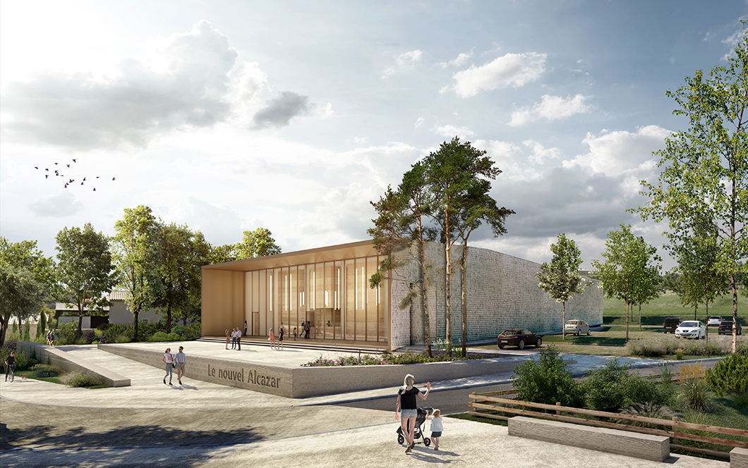 Création d’une salle multifonction avec scène de 16x9m et gradins mobiles de 140 places.