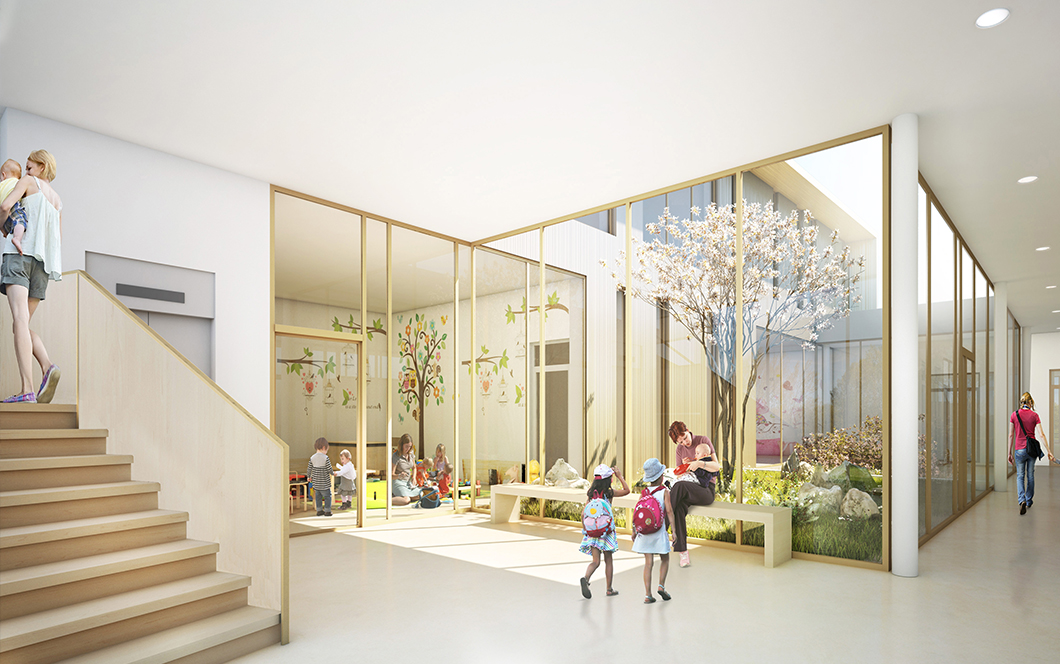 Création d’une BCD et d’une salle polyvalente au RDC bas en liaison directe avec l’école maternelle existante.