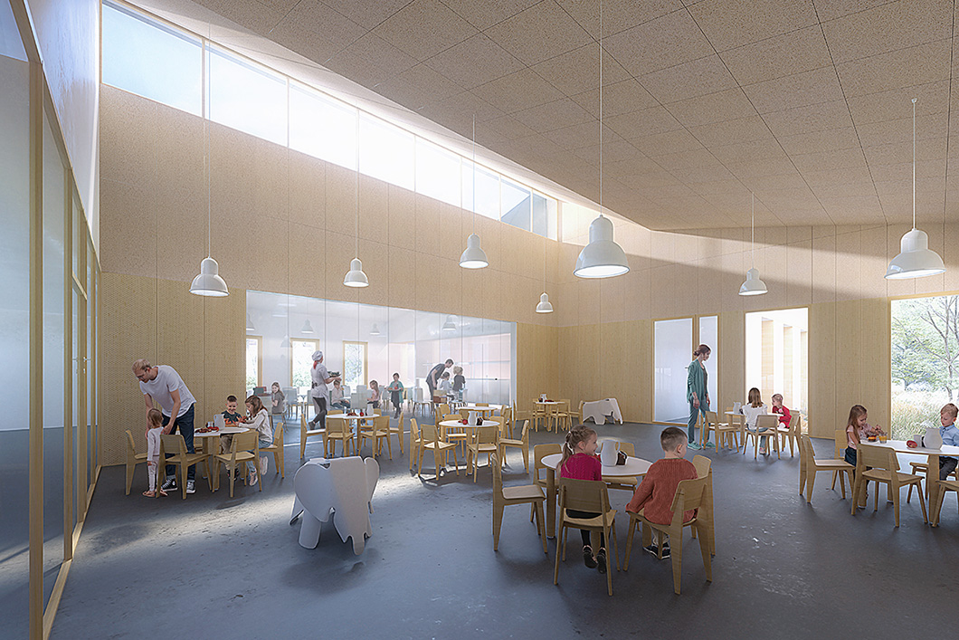 Création d’une cuisine centrale : 660 repas en liaison chaude aux elèves des écoles et crèches. Une salle de restauration attenante : 105 repas pour les maternelles en service à table et 153 repas pour les élémentaires en self.